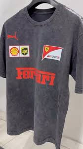 This is a stylish Ferrari Graphic T-Shirt designed for motorsport fans and streetwear lovers. The charcoal washed-black fabric gives it a trendy vintage look, while the bold Ferrari branding and sponsor logos make it stand out as a racing-inspired fashion piece. Perfect for casual wear or showcasing your passion for Formula 1.