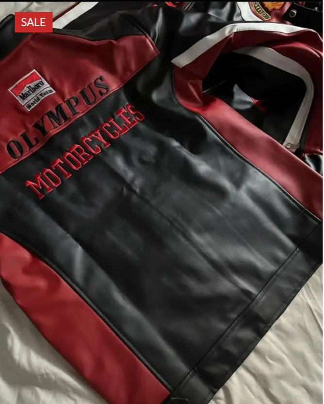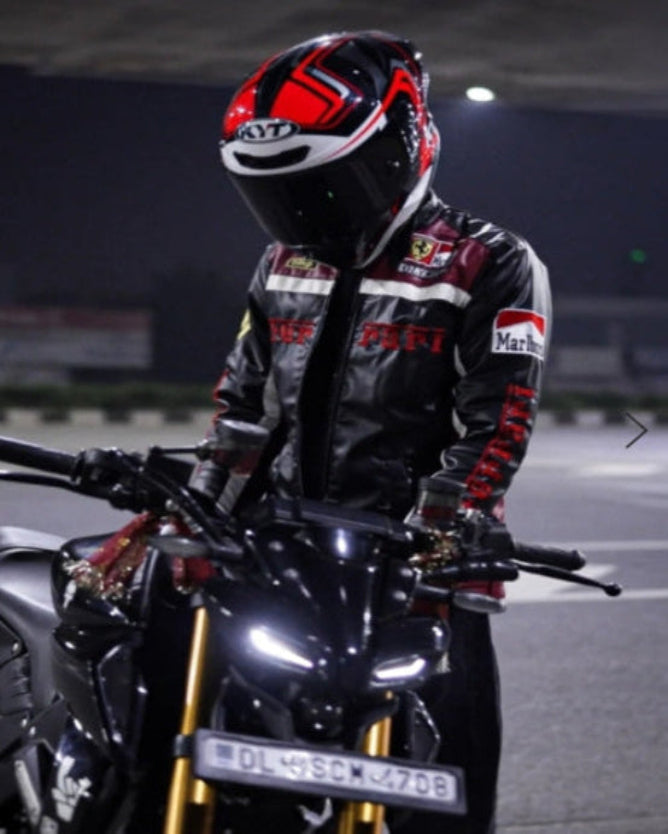 Ferrari Racing Team Leather Jacket – Black & Red Moto Style