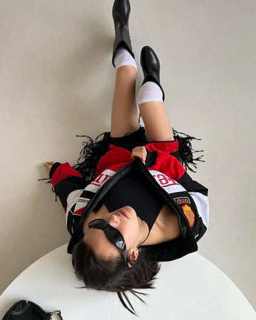 Elevate your wardrobe with this Black Ferrari Racing Jacket, a sleek blend of motorsport passion and modern streetwear. Fully embroidered with the iconic Ferrari logo and sponsor patches, this jacket delivers an authentic racing vibe. The premium black finish with bold detailing makes it versatile for casual wear or race-day fashion. Designed with a zip-up front, high collar, and comfortable fit, it’s the perfect choice for true Ferrari fans who want to showcase their racing spirit in style.